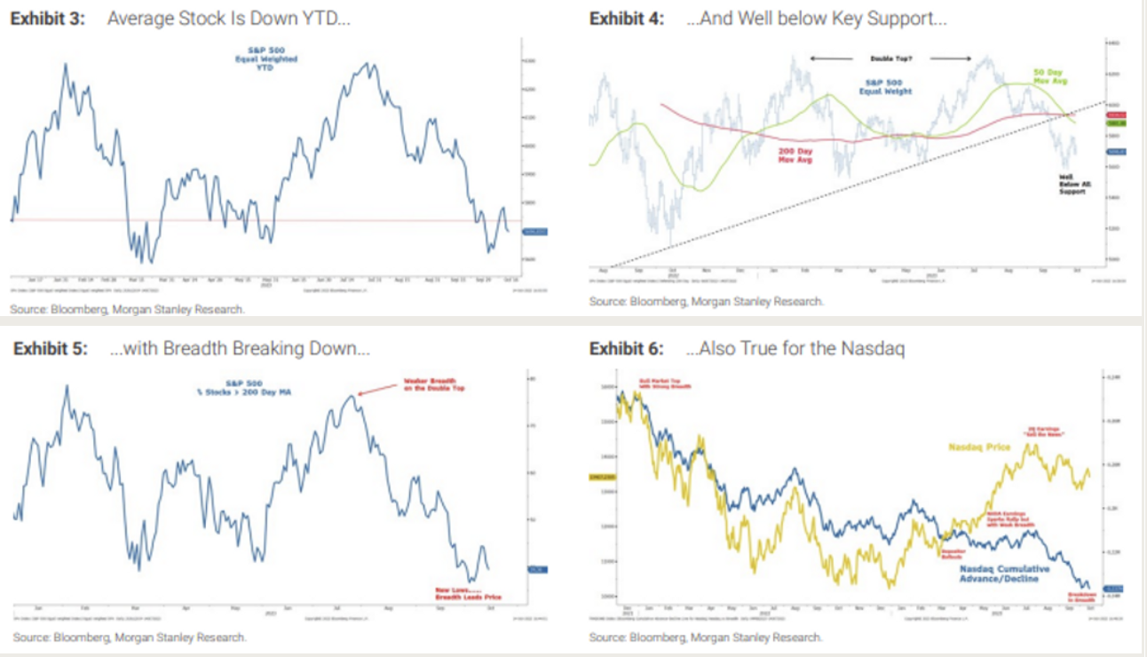 Jpmorgan, 지속될 고금리 상태, 고평가된 증시 벨류, 지정학적 리스크/ 멀티플 확대로 인한 상승인 상황이며 실질금리,자본비용 상승에 따라 유동성이 타이트해지고있음. 역사적으로 봤을 때 현 상황은 멀티플 축소로 이어져왔음.
